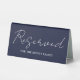 This navy blue minimalist elegant script reserved sign can be personalized with your information in chic typography. Designed by Thisisnotme©