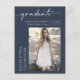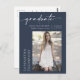 Yay! She finally graduated from school either from high school, college/university, tech school, or a graduate program so now it's time to inform family and friends that she did it! Celebrate one of her life's precious moments and send out this graduation announcement postcard. This postcard features elegant modern minimalist graduation announcement featuring a beautiful calligraphy script on a navy blue background and the graduate's photo. Just customize and replace the text and photo in the personalization box.