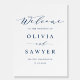 Welcome guests to your event with this customizable wedding welcome sign. It features navy blue minimalist script and simple typography. Personalize by adding your details. This calligraphy wedding welcome sign is perfect for any wedding theme and season.
