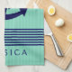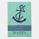 Navy Blue & Mint Stripes & Nautical Boat Anchor 2 Kitchen Towel