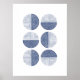 This modern, geometric art print features a series of blue circles divided in half, and divided up with curvilinear and straight lines. This design is versatile enough to work with a variety of decor styles, but I think it would look great in an office or loft.
