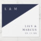 These navy blue and white minimalist, elegant, monogrammed wedding wine labels can be personalized with your information in modern typography. Designed by Thisisnotme©