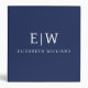 Navy Blue Modern Minimalist Monogram Name 3 Ring Binder