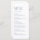 Customizable menu card featuring modern typography. Personalize by adding date and meal choice. This navy blue minimalist menu card is perfect for weddings, baby showers, bridal showers, birthdays, and more.