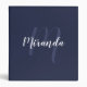 Navy Blue Modern Script Monogram and Name 3 Ring Binder