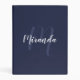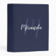 Navy Blue Modern Script Monogram and Name Mini Binder