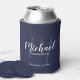Navy Blue Modern Script Personalized Groomsmen Can Cooler