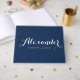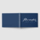 Elegant and modern wedding guestbook featuring white modern script with navy blue background. Customize by adding your own details. The color will be perfect for nautical themed weddings.