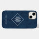 Navy blue background highlights your monogram in a white diamond frame and your full name at the bottom. Create for yourself or give as a gift.