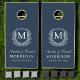 Navy Blue Monogram Crest Modern Wedding Cornhole Set