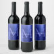 Navy Blue Monogram Girly Script Metallic Steel Wine Label