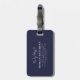 This elegant monogram golf bag or luggage tag features a simple white outline of a golf bag filled with clubs against a navy blue background. The design includes a classic serif font initial monogram on the bag, blending seamlessly into the overall look. Below the monogram, the full name is displayed in a matching white serif font for a clean and sophisticated touch.