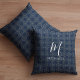 Navy Blue Monogram Pattern Custom Throw Pillow