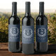 Navy Blue Monogram Wedding Floral Crest Wine Label