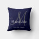 Navy Blue Monogram Wedding Keepsake Throw Pillow