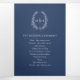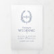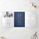 Navy blue monogram wreath story dedication wedding Tri-Fold program