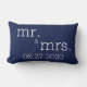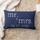 Navy blue Mr. and Mrs. modern wedding pillows with customizable text