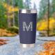The design features a sleek black background with a bold gray initial on both sides, overlaid by your name in elegant white script for a personalized touch you’ll see from any angle. With its double-sided monogram and functional design, this mug is great for sipping coffee or tea on the go—whether you're commuting, heading to class, or jet-setting across the globe. All colors can be customized to match your style. A great gift for moms, sorority sisters, best friends, or anyone who loves a little wanderlust with their morning drink!