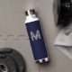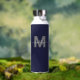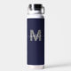 Create Your Own Personalized Navy Blue Initial Script Name Monogram Water Bottle. This stylish and modern water bottle features a deep navy blue background for a sleek and versatile look. A soft gray initial sits in the center with a clean, flat finish, while a white flowing script name overlays the letter for a personalized touch. The custom monogram design appears on both sides, making it easy to show off your style from any angle. Perfect for students, teachers, gym-goers, or anyone on the go, this water bottle adds a functional yet polished accent to your daily routine. Great for birthdays, holidays, or everyday use, it’s a thoughtful gift that blends practicality with timeless design.