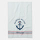 Navy Blue Nautical Anchor & Decorative Stripes Towel