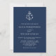 Navy Blue Nautical Anchor Monogram Minimal Wedding Invitation