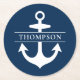 Navy Blue Nautical Anchor Monogram Round Paper Coaster