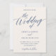 Navy Blue Nautical Elegant Calligraphy Wedding Inv Invitation