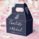 An elegant nautical wedding favor box featuring a ship's anchor, chic signature script names and special date on a navy blue background. You can personalize with your own thank you message on the reverse. A perfect way to say thank you to your guests! Designed by Thisisnotme©