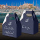 Navy Blue Nautical Signature Script Wedding Favor Boxes