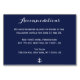 Custom navy blue and white nautical wedding accommodation cards with customizable text