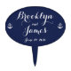 Navy blue nautical wedding cake toppers with customizable text