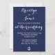 Plain white envelopes are included with paper invitations and will come to fit the invitation size you select. If you don’t need the envelopes, you may choose to not receive them by selecting the dropdown below "Envelopes" and choosing "None." If you’d like to have a design on your envelopes, you can browse all of these available envelopes to find the design that complements your Navy Blue Nautical Wedding Invitations Anchor.