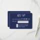Custom navy blue and white nautical wedding RSVP cards (round) with anchor and customizable text