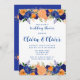 Navy Blue Orange Botanical Florals Wedding Shower Invitation