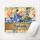 Navy Blue Orange Floral Gold Name Script Mouse Pad