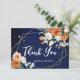 Navy blue orange white roses wedding thank you card