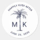 Navy Blue Palm Tree Monogram Tropical Wedding Classic Round Sticker