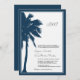 Plain white envelopes are included with paper invitations and will come to fit the invitation size you select. If you don’t need the envelopes, you may choose to not receive them by selecting the dropdown below "Envelopes" and choosing "None." If you’d like to have a design on your envelopes, you can browse all of these available envelopes to find the design that complements your Navy Blue Palm Tree Wedding Invitation.