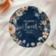 Navy Blue Pastel Wildflowers Sweet 16 Paper Plates
