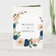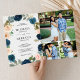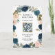 Navy Blue Peach Floral All in One QR Code Wedding Invitation
