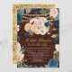 Navy Blue Peach Floral Pumpkin Wood Baby Shower Invitation