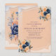 Navy Blue Peach Painted Floral Couples Shower Invitation