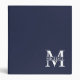 featuring personalized white monogram in classic serif font style with box of name in the middle of monogram on navy blue background.