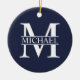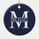 Navy Blue Personalized Monogram and Name Ceramic Ornament