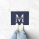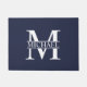 featuring personalized white monogram in classic serif font style with box of name in the middle of monogram on navy blue background.