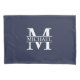 featuring personalized white monogram in classic serif font style with box of name in the middle of monogram on navy blue background.