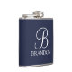 Navy Blue Personalized Script Monogram and Name Flask