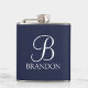 features personalized monogram in white classic script font style and name in white classic serif font style on navy blue background.