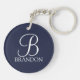 features personalized monogram in white classic script font style and name in white classic serif font style on navy blue background.