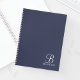 features personalized monogram in white classic script font style and name in white classic serif font style on navy blue background.